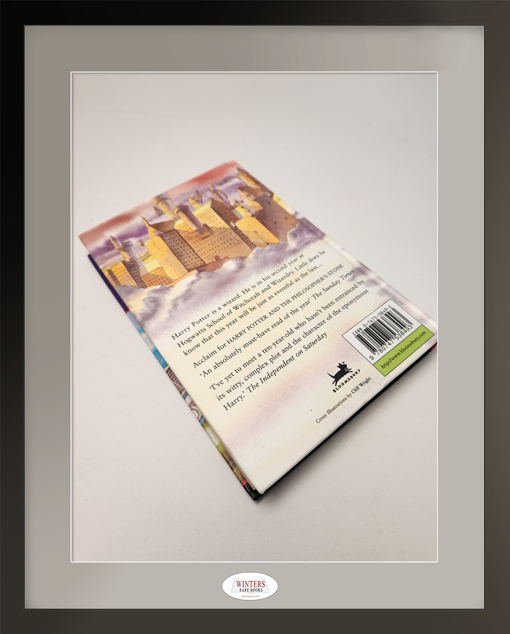 Near fine copy of a first edition, early UK Bloomsbury printing of Harry Potter and the Chamber of Secrets, with a number line 10-8. Near fine pictorial boards with bumped spine ends and sharp corners. The binding is tight, and the endpapers are clean with no marks, inscriptions, or stamps. Pages are clean with the usual browning to the edges. The unclipped dust jacket is also in a near fine condition with minor wear on the edged , featuring vibrant colors and no fading whatsoever. Now protected by a Brodart removable archival book cover. A nice early copy of the second Harry Potter book.