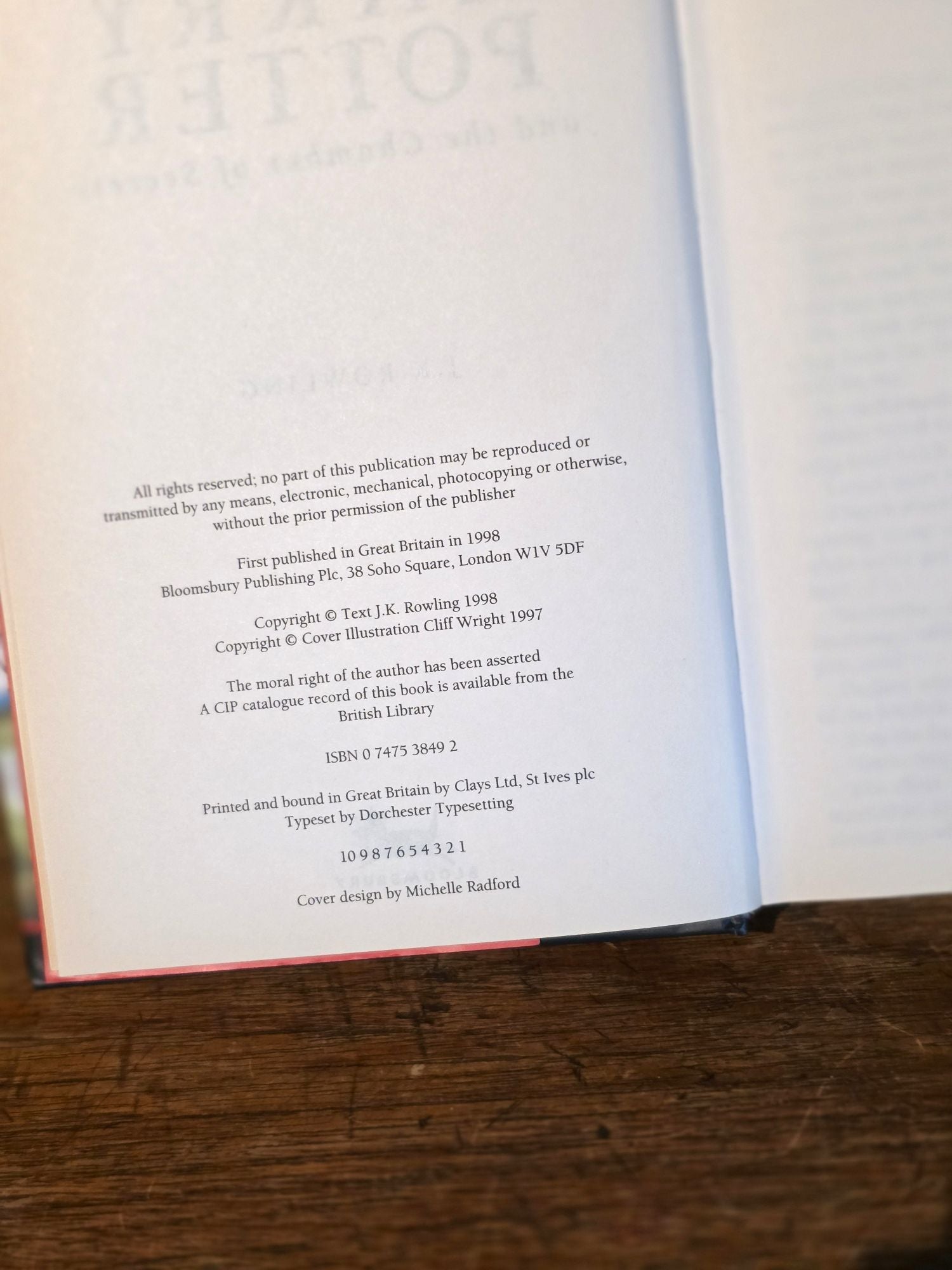 First Edition, First Printing of the UK Bloomsbury hardcover edition of Harry Potter and the Chamber of Secrets. Published on 2 July 1998 in a very limited print run.