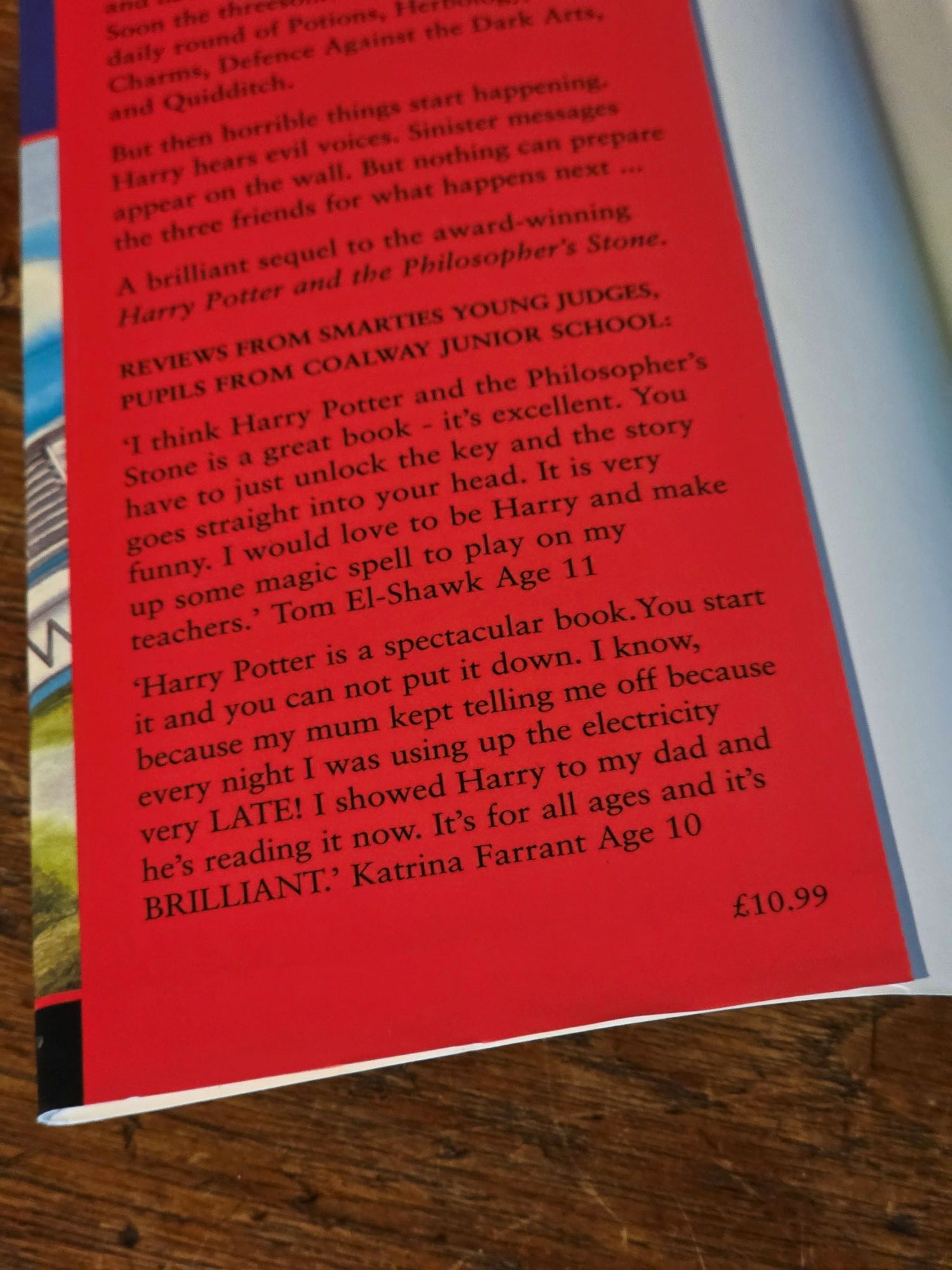 First edition, first printing hardback of Harry Potter and the Chamber of Secrets, full numberline 10-1, signed by J.K Rowling to the title page in October 1998 at the Cheltenham Children's Literature Festival.
