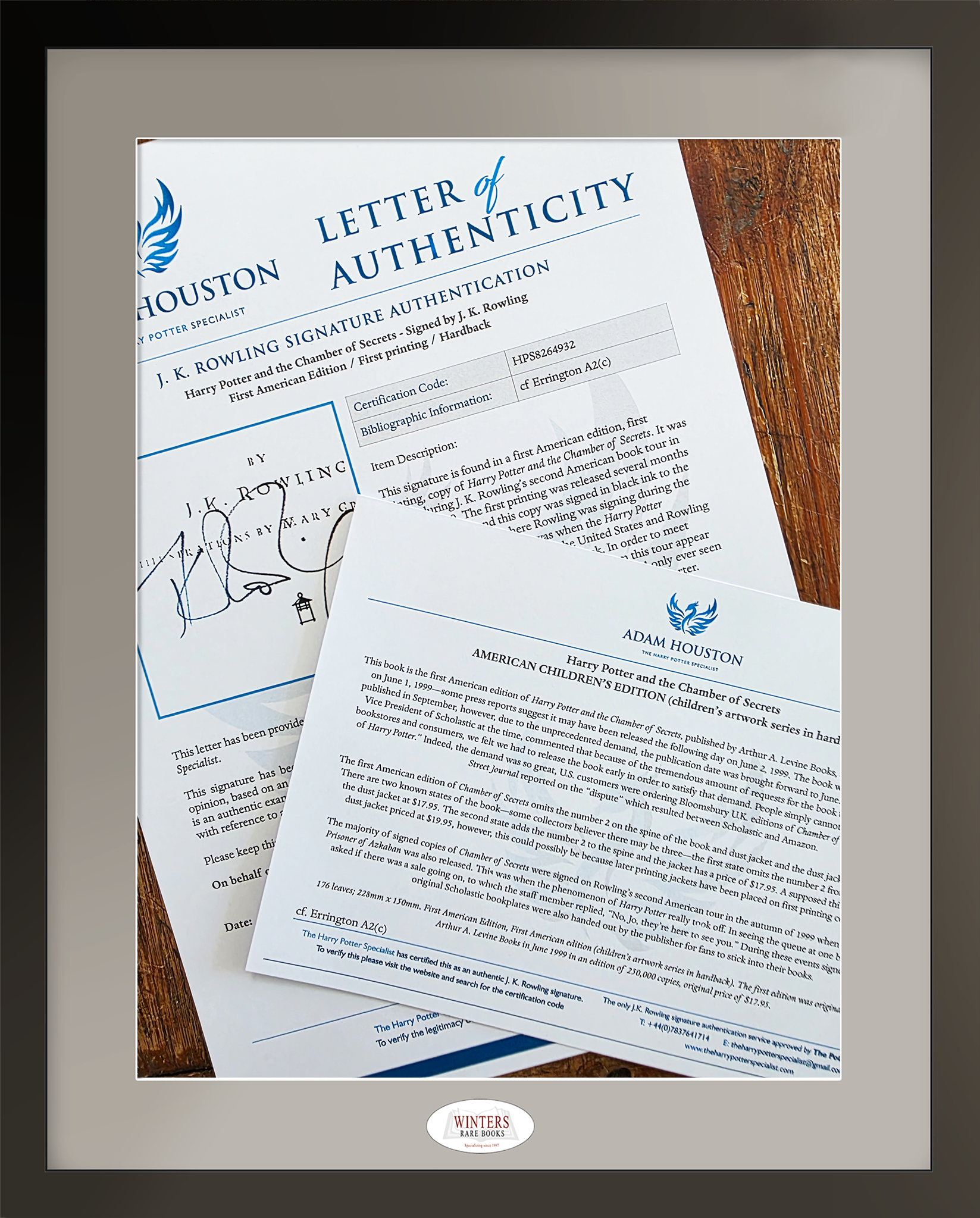 Included is the all-important Letter of Authenticity (LOA) from the world’s only J.K. Rowling signature expert, Adam Houston of TheHarryPotterSpecialist, along with a collector’s card containing interesting details.