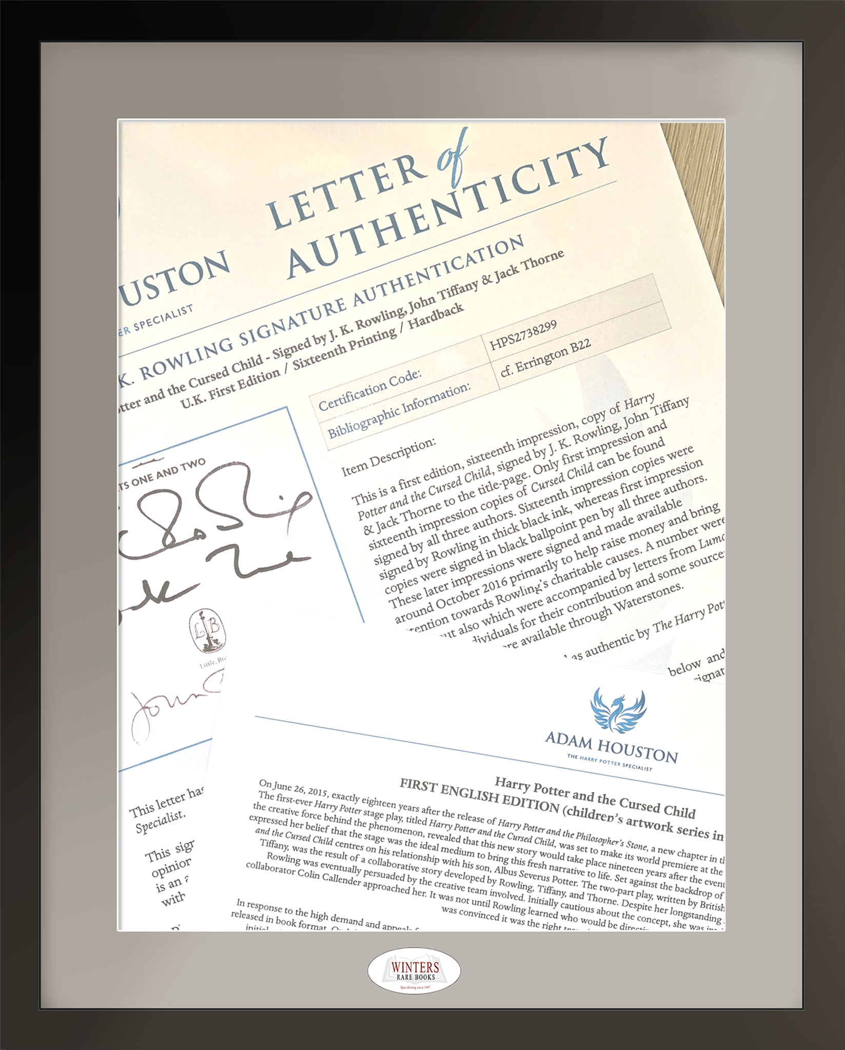 Authenticated by J.K. Rowling signature expert Adam Houston of The Harry Potter Specialist, the book comes with a Letter of Authenticity (LoA) and a collector’s card providing additional interesting details.