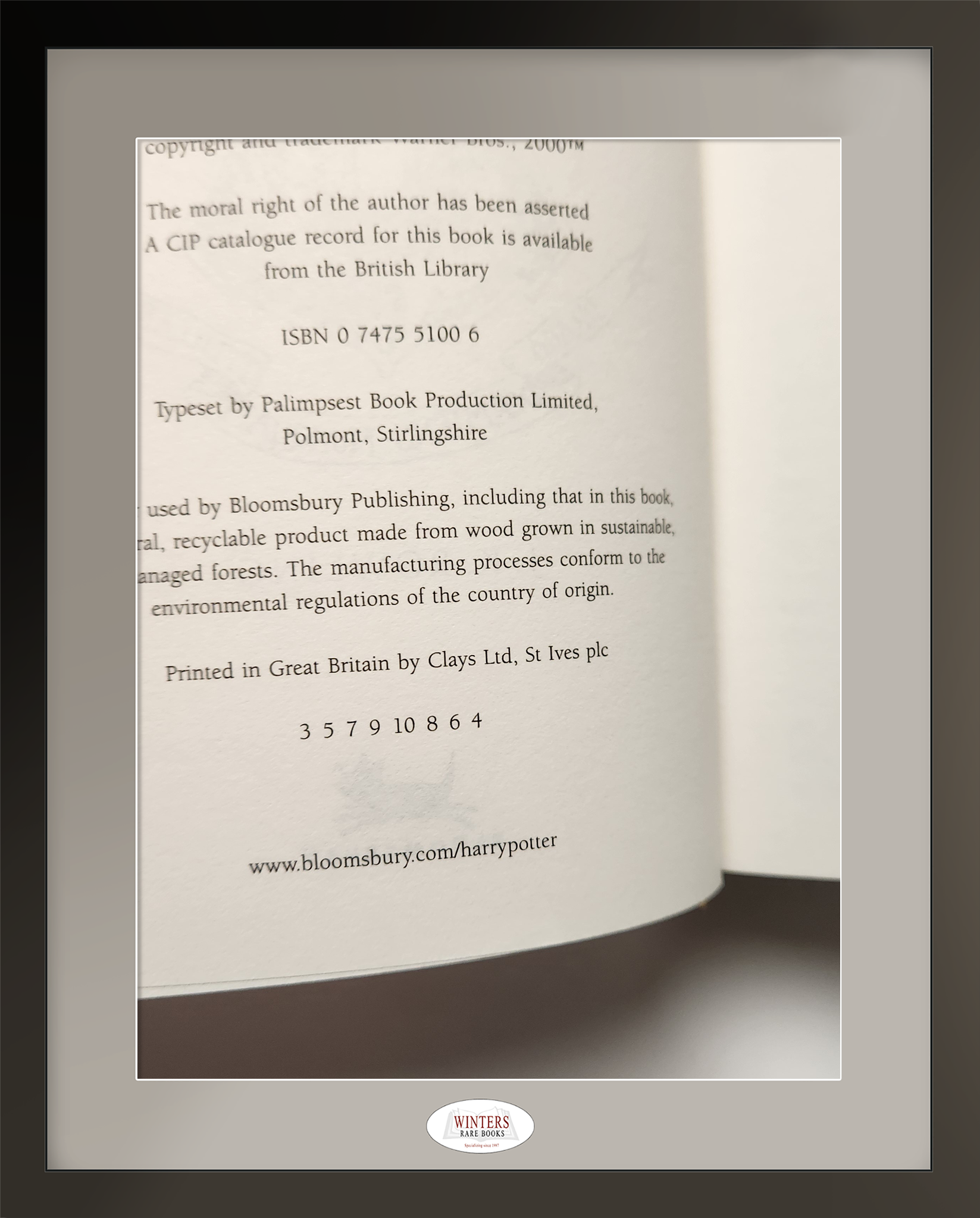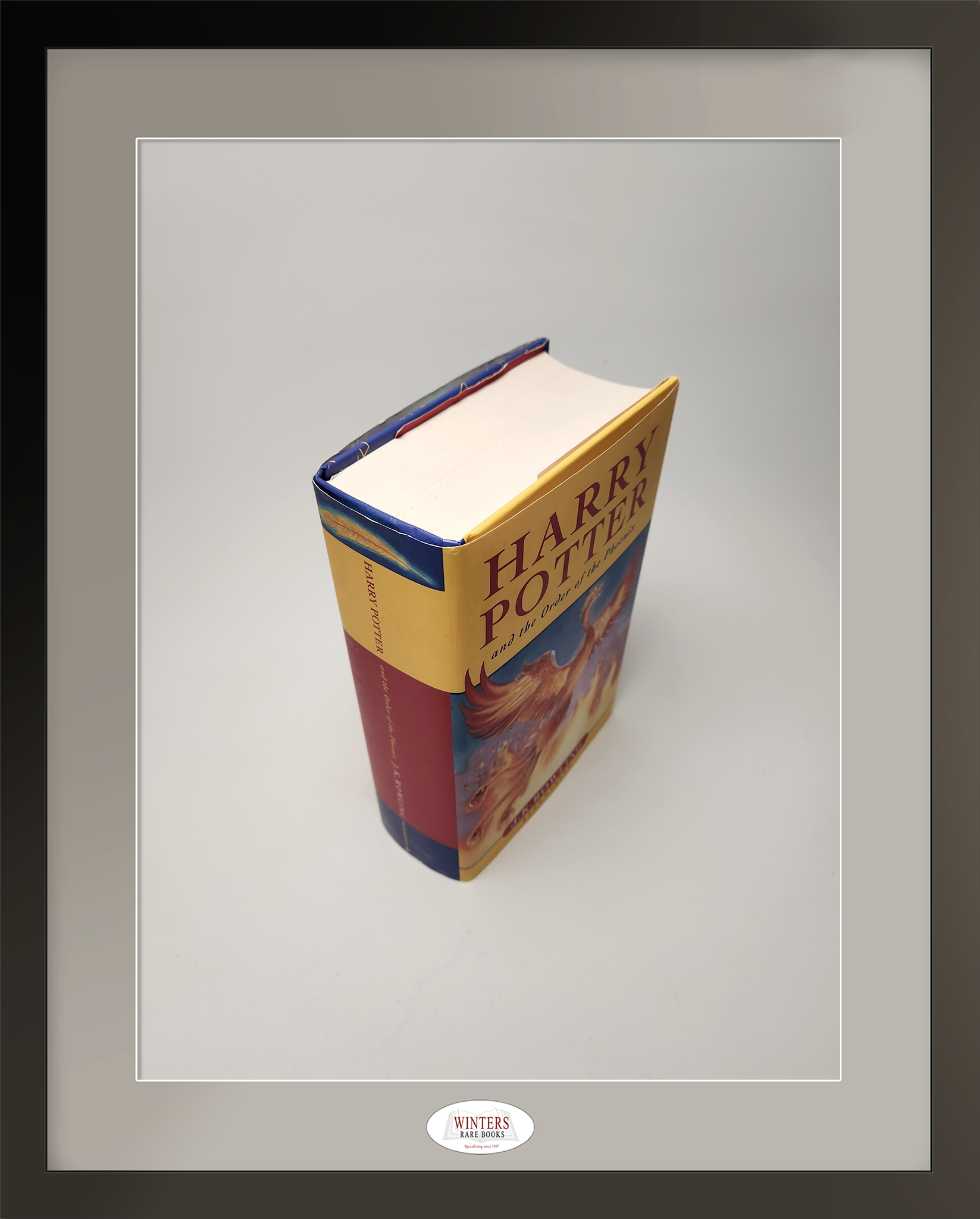 First edition, third impression of Harry Potter and the Order of the Phoenix, signed by J.K. Rowling on the half-title page. The book was signed in 2003 at a private event at Hamilton & Inches, Royal Jewellers in Edinburgh. This title is one of the hardest Harry Potter books to find signed in any print run, as the author made only one small appearance for the release of the book.