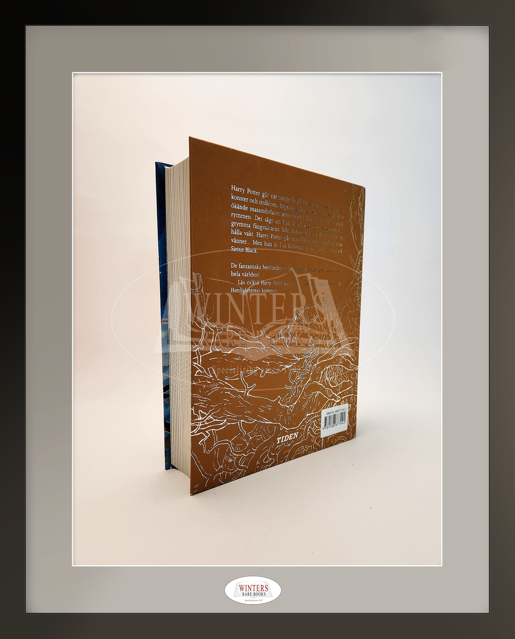 First edition, first printing of Harry Potter och Fangen fran Azkaban , the Swedish translation of ‘Harry Potter and the Prisoner of Azkaban’, published in December 2001 by Tiden, Stockholm. Arguable one of the nicest foreign editions ever published. The beautiful illustrated cover is in a fine condition with sharp spine- and corner ends. No Dust Jacket as issued. Internal clean without signatures or writing. Bright pages and a firm binding. A great addition to any Harry Potter collection.