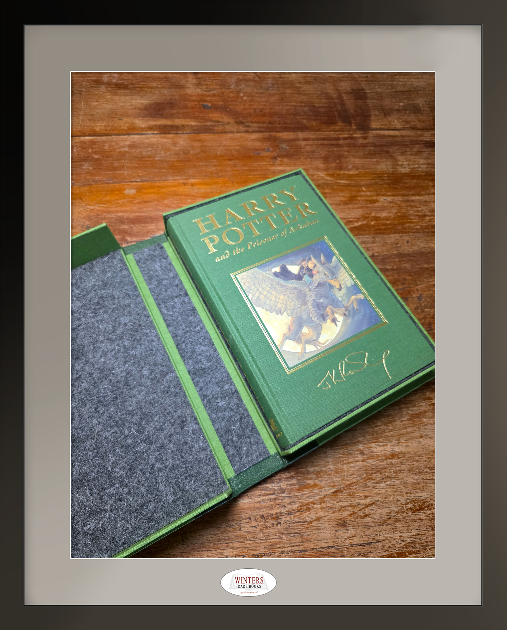 First edition, first printing of the Deluxe edition of Harry Potter and the Prisoner of Azkaban, signed by J.K. Rowling on the half-title page in black ink.