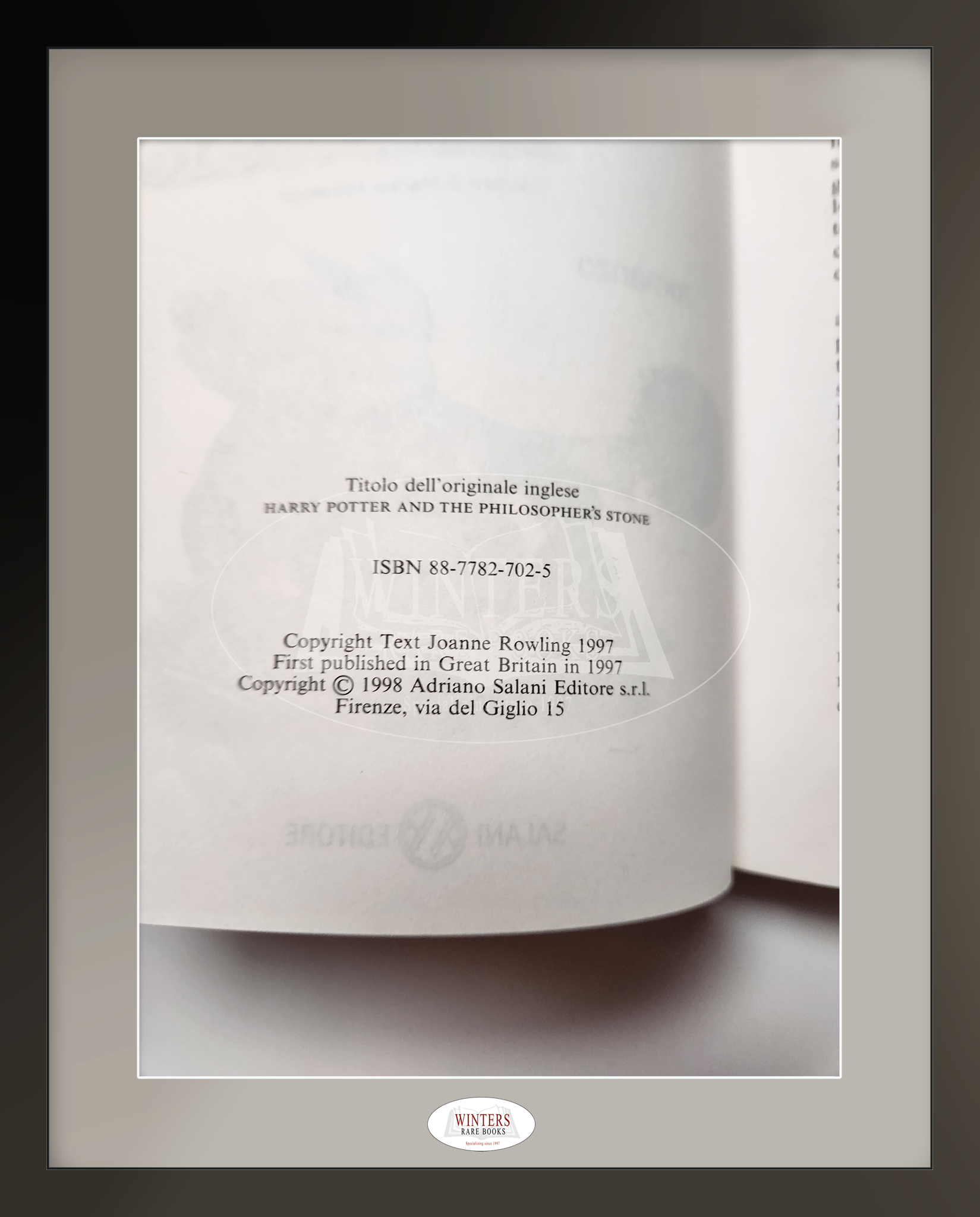 Harry Potter e la pietra filosofale first edition, first printing – May 1998